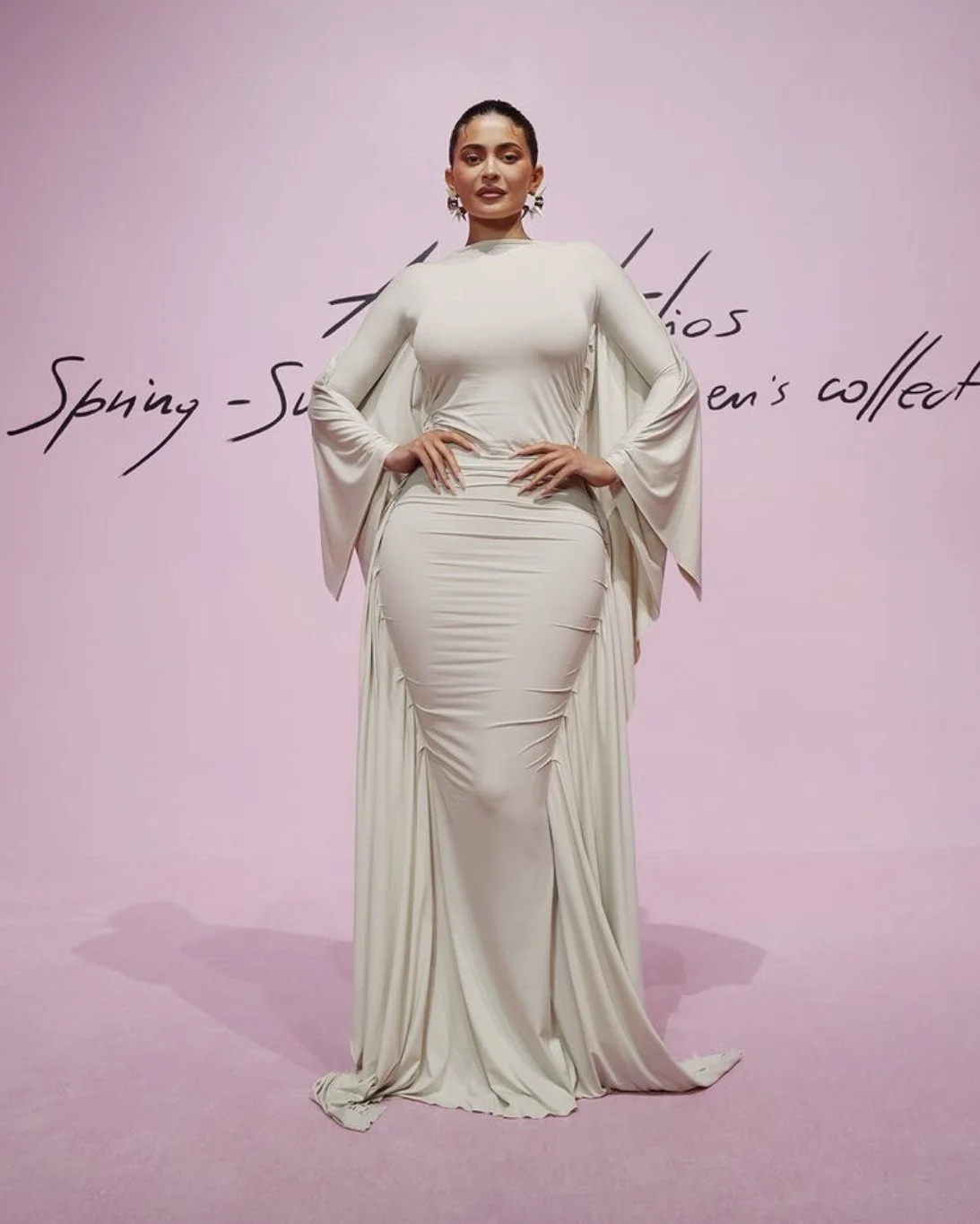A masterful collection of layered skirts atop draped silk dresses finished with lace hems, spiked jeans paired with Uber femenine lace tops and pink bows, ribbed see-through unitards adorned with pink petals, oversized distressed leather blazers with spikes countering its silhouette, the brands signature straight sheer pants, voluminous caged skirts and body-hugging wet-like body cons.