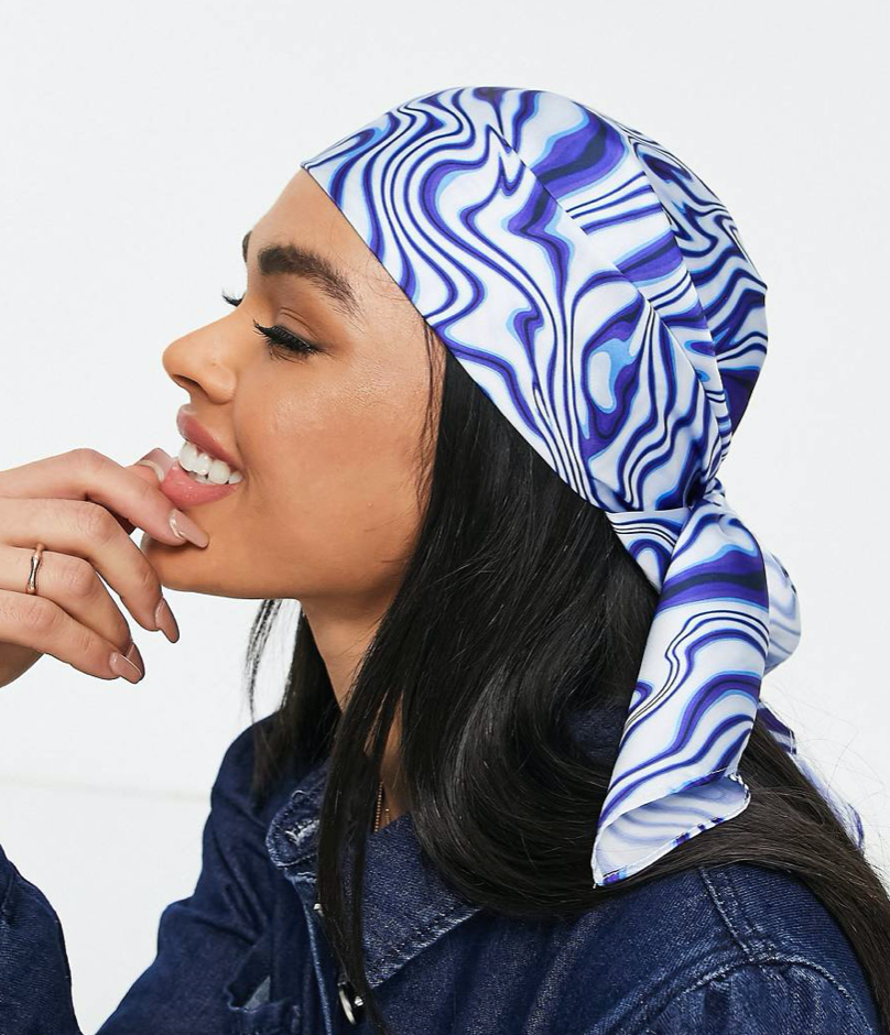 The ultimate cool-girl look is to fold the preferred scarf or bandana into a triangle and wrap it around your head. It pulls an outfit together so seamlessly. Don’t be afraid to mix scarf prints with your outfit, you’ll look so fashionable.