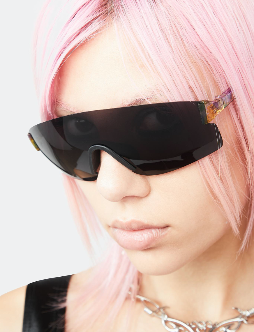 The shield-looking eyewear making us feel like we are in the matrix is actually beyond popular at the moment. They are so cool and dramatic and will most likely spice up any outfit.
